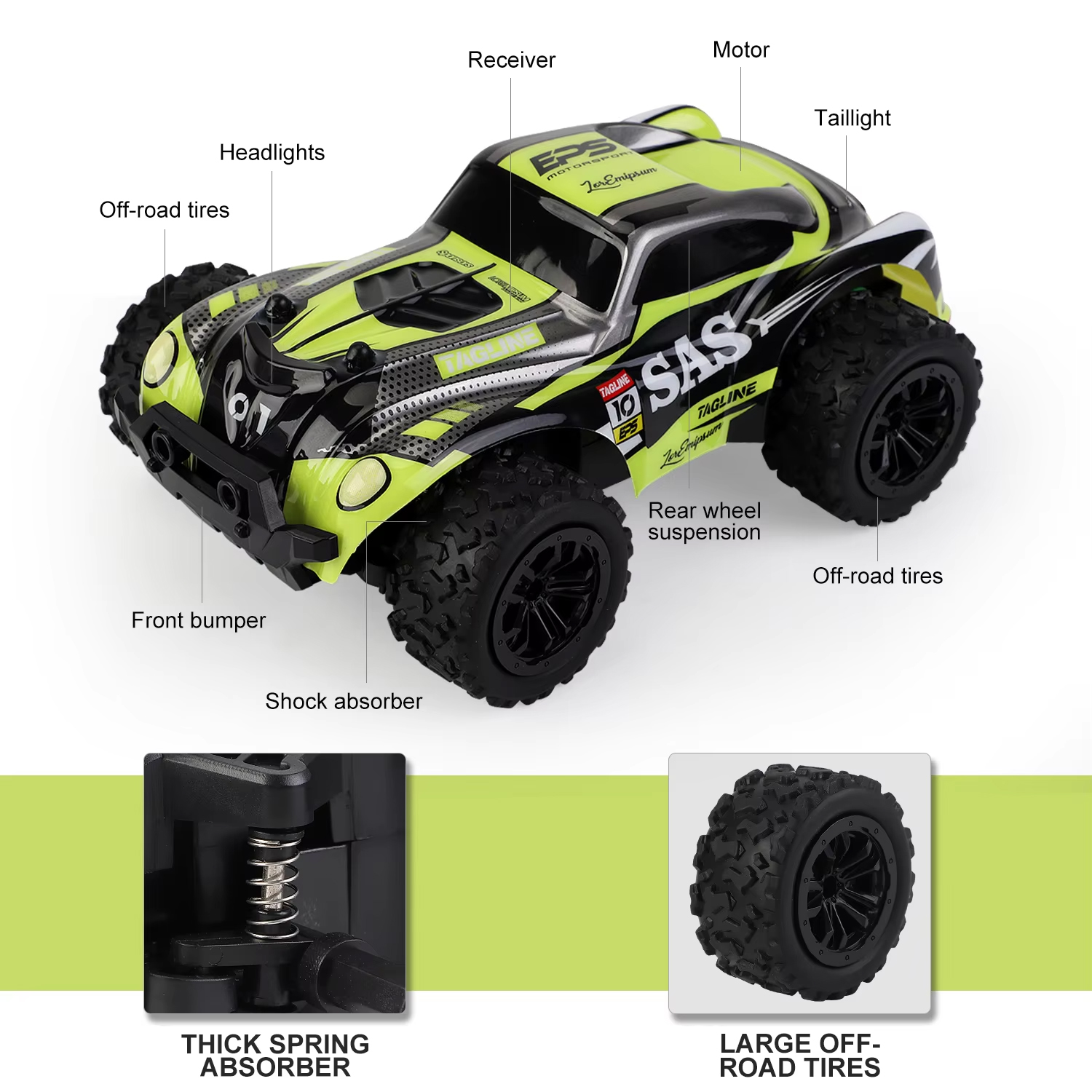 • Full LED Light System: Race day or night! Equipped with functional headlights and taillights, this RC car looks stunning in low-light conditions and allows for better visibility during high-speed maneuvers.