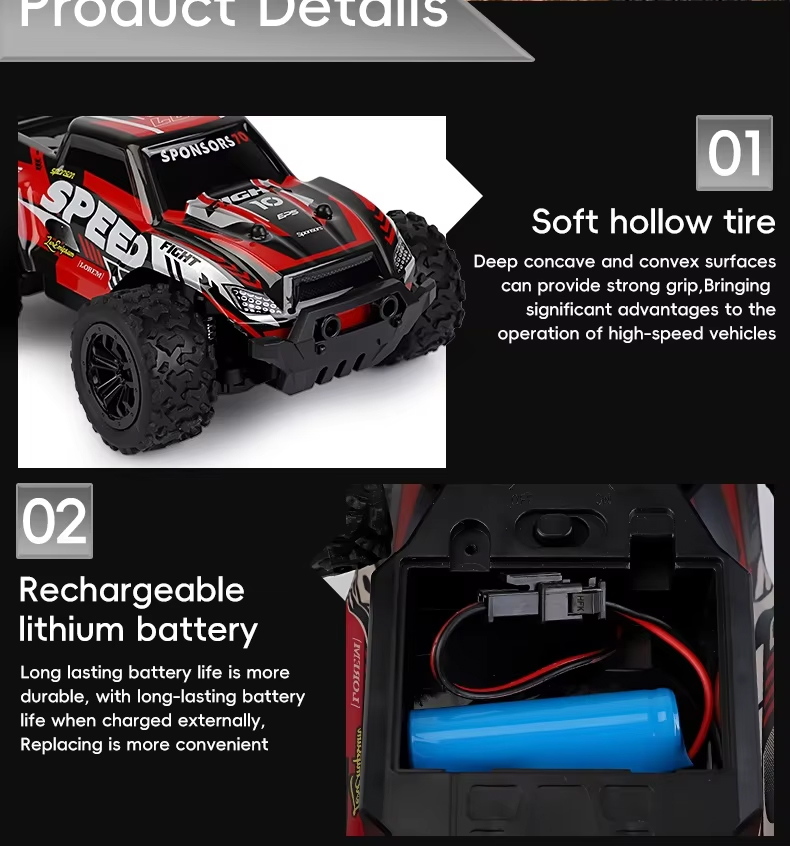 - Realistic 1:20 Scale Design: A high-simulation pickup body built from durable materials to withstand high-speed impacts and rough play.
