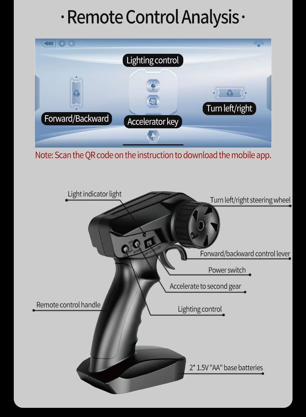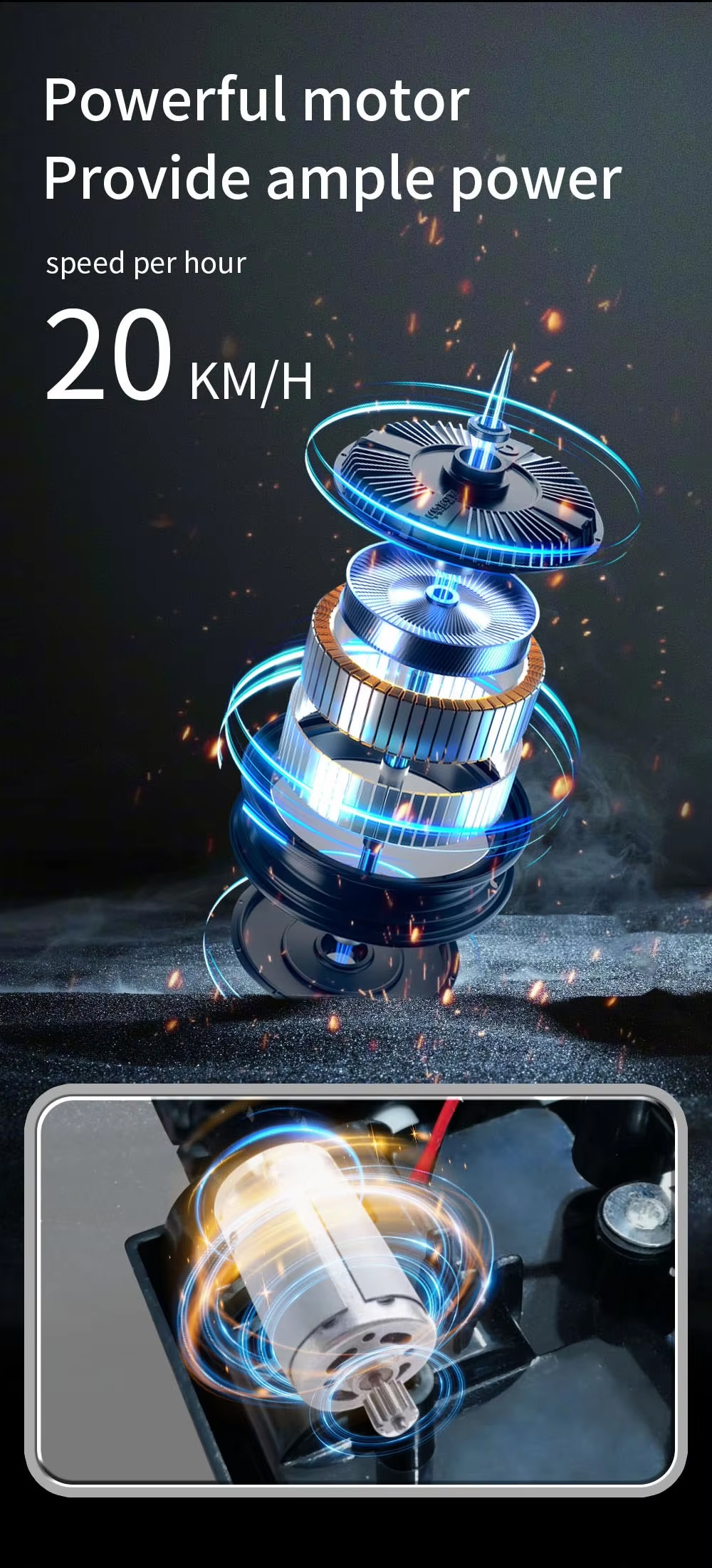 The NG Y23 isn’t just a toy; it’s a smart racing machine. With its dual-control system and proportional throttle, it offers the granular control usually reserved for hobby-grade RC cars. From the realistic engine sounds to the high-visibility LEDs, every detail is crafted for maximum immersion.