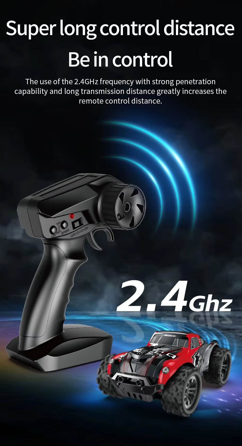 - 2.4GHz E-Sports Controller: Ergonomic design with zero-latency response. Features full proportional throttle and steering for authentic racing feedback.