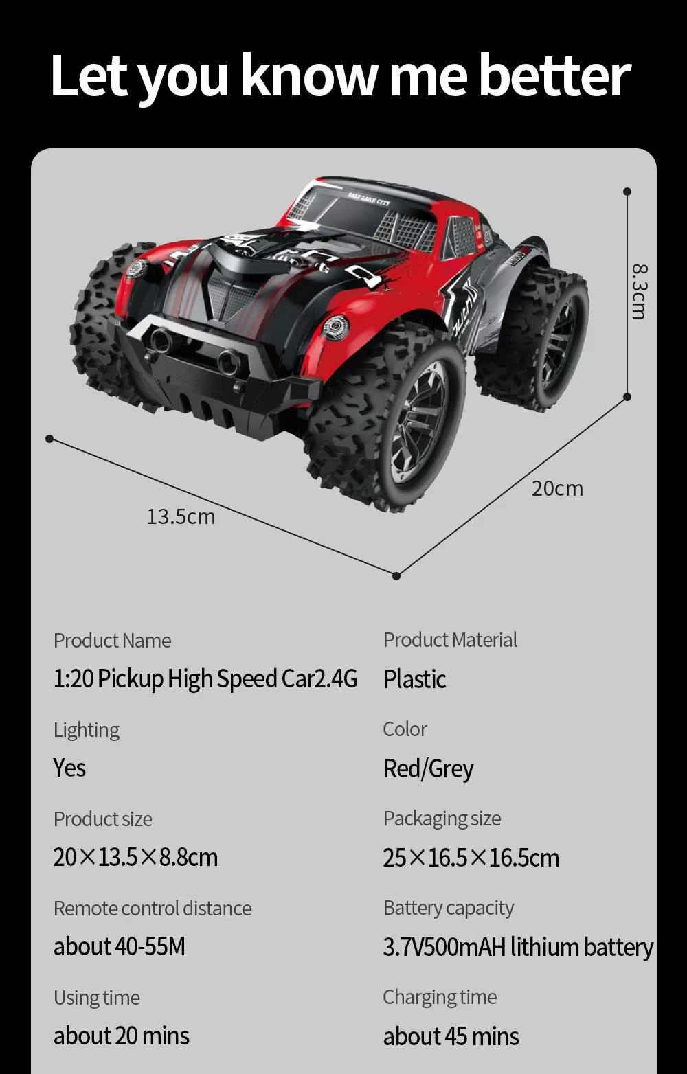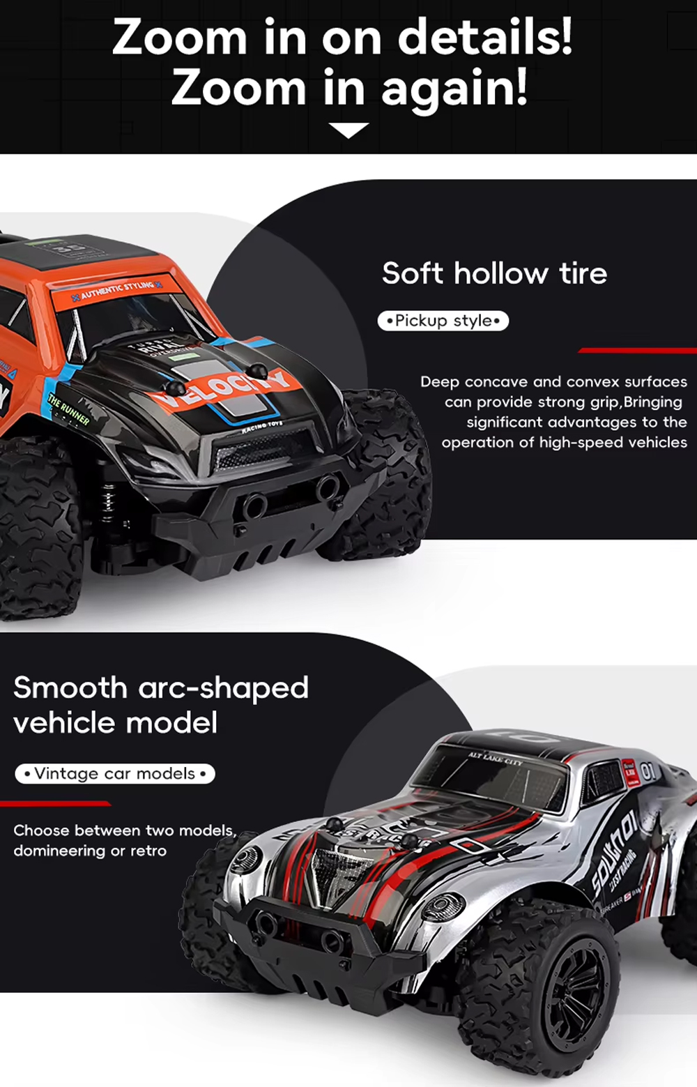 Dominate any terrain with the NG Y23 High-speed RC Racing Drift Car, a high-performance RC racing drift car engineered for speed, precision, and style. Whether you’re a beginner looking for steady control or a pro chasing a 20KM/H adrenaline rush, this 1:20 scale powerhouse delivers an unmatched driving experience.